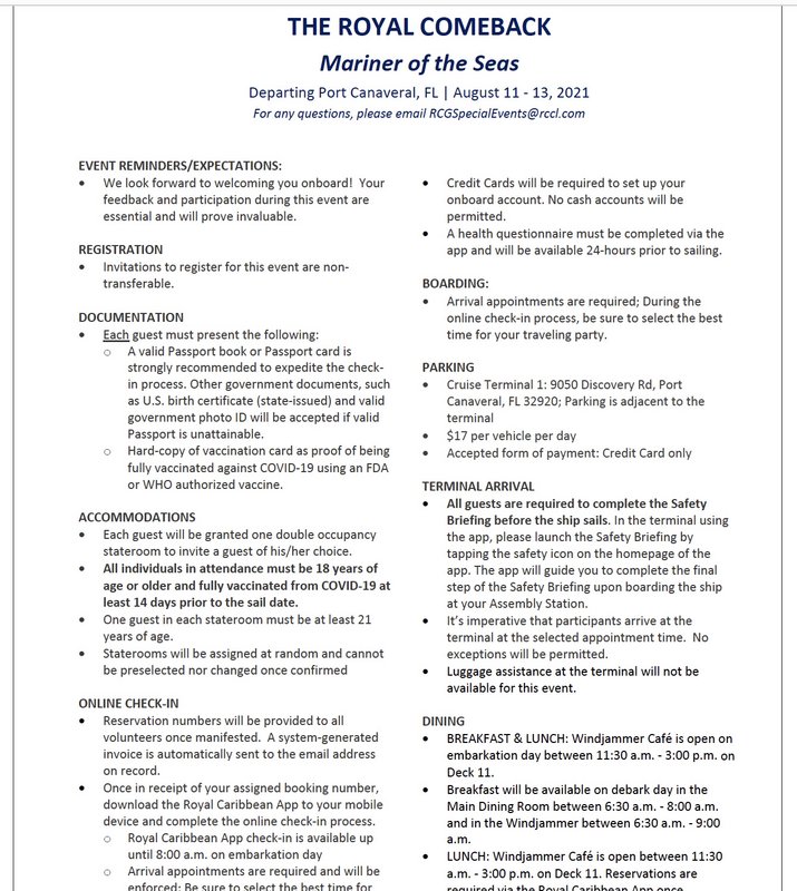 From downloading the Royal Caribbean app to to. The wellness screening and Health Questionnaire will be completed at check-in so please arrive to the terminal at the arrival time thats printed on your SetSail Pass Your safety briefing will be. By BrianB October 16 2021 in Royal Caribbean Discussion.